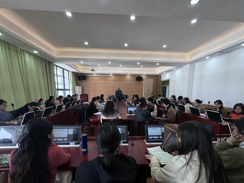11月21日,上海外国语大学博士生导师郑新民教授作客我校教学发展论坛,作题为“AI辅助论文写作:开启高效与创新的新篇章”的专题讲座,外国语学院外语教师以及部分中德学院、人文学院、艺术学院的师生聆听报告。
